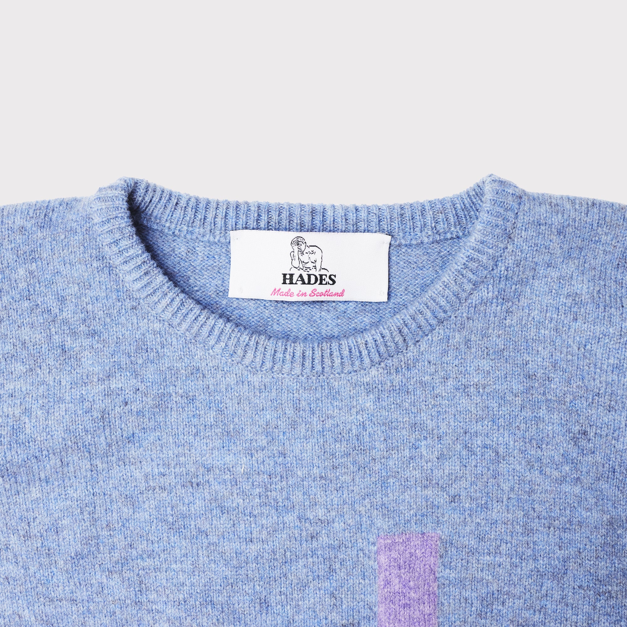 The light blue and lilac J knit from the Alphabet collection is made from pure lambswool.