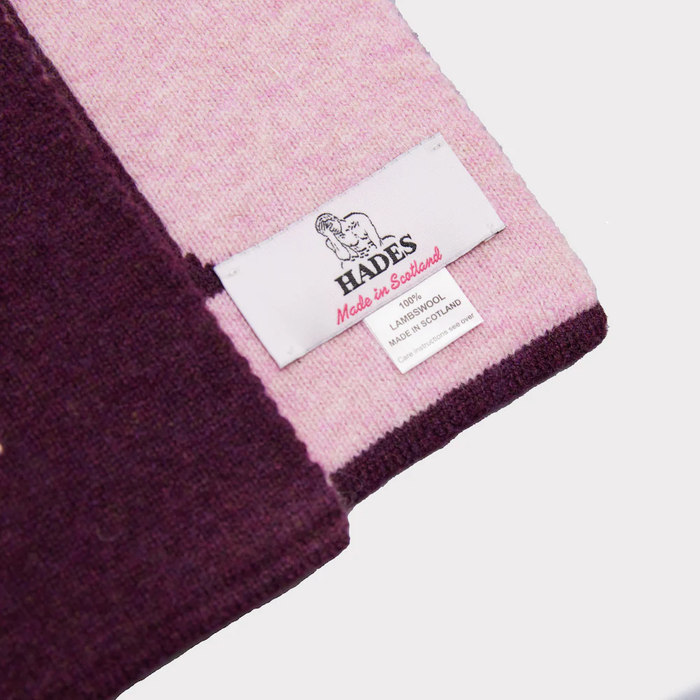 The grape & pink L macro double scarf from the Alphabet collection is made from pure lambswool.