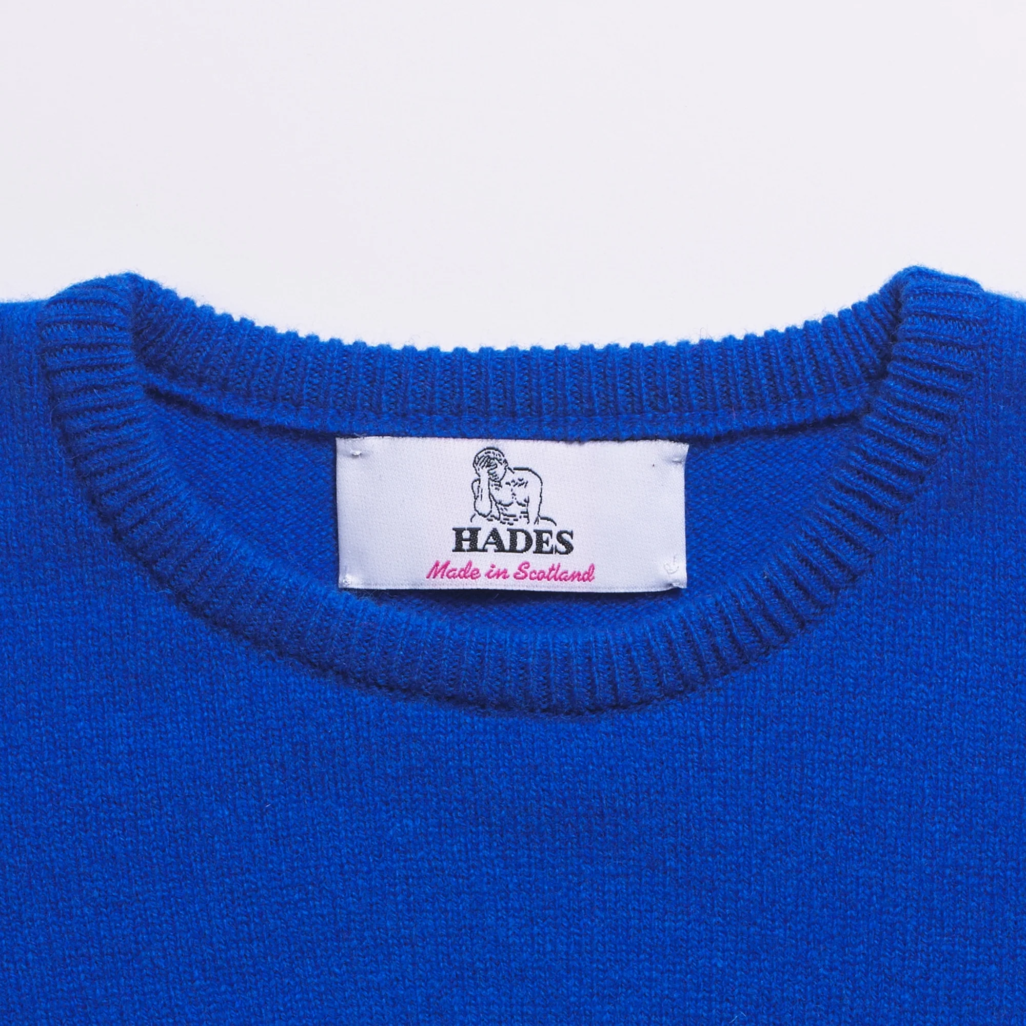 The electric blue and camel P knit from the Alphabet collection is made from pure lambswool.