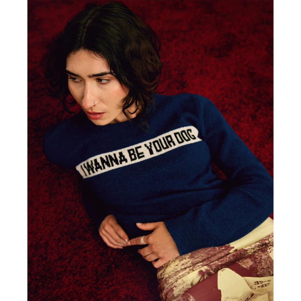The ‘I Wanna Be Your Dog’ knit in azure from the ‘I’m Sick Of You!’ collection.