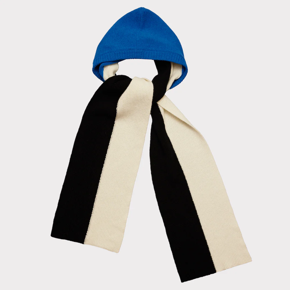 The neptune, black & white hooded scarf is made from pure lambswool and is handcrafted in Scotland by Sharon, Shirley, Finlay, Sandra, Ann, Allan and Kevin.